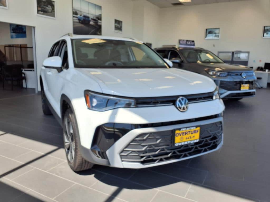 In stock. Please contact our sales team for availability and details! | The 2025 Volkswagen Taos proves that great things come in small SUVs. Designed to fit your lifestyle, the Taos combines modern style, advanced technology, and impressive performance in a versatile, compact package. With its turbocharged engine, exceptional fuel efficiency, and nimble handling, the Taos is perfect for city streets and weekend escapes alike. Inside, enjoy a spacious cabin with refined materials, comfortable seating, and up to 65.9 cubic feet of cargo spaceperfect for whatever life throws your way. Stay connected on every journey with the VW Digital Cockpit, wireless charging, and seamless smartphone integration. Plus, drive with confidence thanks to IQ.DRIVE, Volkswagens suite of advanced driver-assistance features, including Adaptive Cruise Control, Lane Assist, and more. The 2025 Volkswagen Taos is built for those who want to do more and go farther. Drive one today at Overturf Volkswagen in Kennewick and redefine your adventure.