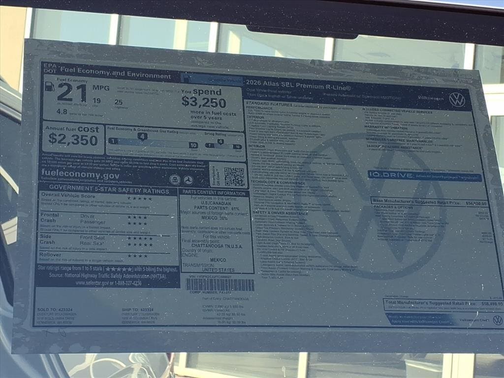 Here are reasons why our customers love owning an Atlas & why you should consider purchasing a new 2026 Volkswagen Atlas: 1. The â26 Atlas is designed for real families â" with room for up to 7 passengers & generous legroom in all 3 rows. Easy access to the 3rd row in which adults can comfortably ride in the third row, & great cargo space with the rear seats folded, making it excellent for road trips, sports gear, or hauling big loads. | 2. Owners often appreciate the Atlas for its straightforward usability. Inside, the Atlas offers a comfortable & thoughtfully appointed environment. Standard seating includes heated & ventilated front seats, a heated steering wheel, tri-zone climate control, & a digital gauge cluster â" features you might expect in more expensive SUVs. Higher trims bring luxury touches like massaging seats, leather upholstery, & panoramic sunroof options. All with thoughtful storage to plenty of cupholders & well-placed controls throughout the cabin. | 3. Technology is a strong point on the â26 Atlas. Every model comes with wireless Apple CarPlay and Android Auto, multiple USB-C ports, wireless phone charging, & an available premium Harman Kardon audio system. An available head-up display help keep key info right in your line of sight. | 4. Volkswagen equips the â26 Atlas with a full suite of driver-assist tech through its IQ.DRIVE system. Standard features include automatic emergency braking, blind-spot monitoring, adaptive cruise control, lane-keeping assist, & more designed to help make daily driving & highway trips safer & less stressful. | 5. Powered by a turbocharged 2.0 TSI® engine, the Atlas delivers confident merging & passing performance â" and itâs rated to tow up to 5,000 lbs when properly equipped, giving it versatility for camping trailers or boats. | **Volkswagen of America, Inc. will apply a $1,000 Customer Bonus toward your purchase of a new, unused 2026 Volkswagen 2026 Volkswagen Golf GTI, Jetta, Atlas, or Tiguan (S, SE, and SE R-Line Black Trim Levels Only). Excludes 2026 Tiguan SEL R-Line Turbo. Must take delivery between March 3, 2026 and April 30, 2026. Bonus cannot be combined with discounted Volkswagen Financial Services Special Lease or Wells Fargo Special APR Programs, or on Fleet or Dealership Sale Program vehicles. Bonus applied toward lease or purchase and is not redeemable for cash. See Overturf Volkswagen for details. | Sale price excludes sales tax, licensing, and $200 negotiable dealer documentation fees. See Overturf Volkswagen for details.